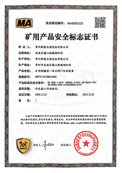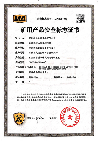 > 电动装置煤安证书